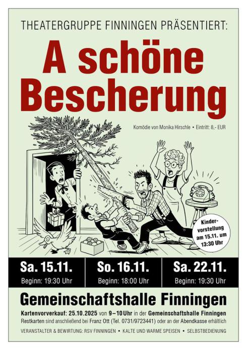 Der zweite Höhepunkt steht uns mit der Durchführung der Finninger Theateraufführungen am 15./16. und 22.11. 2025 bevor. Gerne nehmen wir von der Vorstandschaft diese